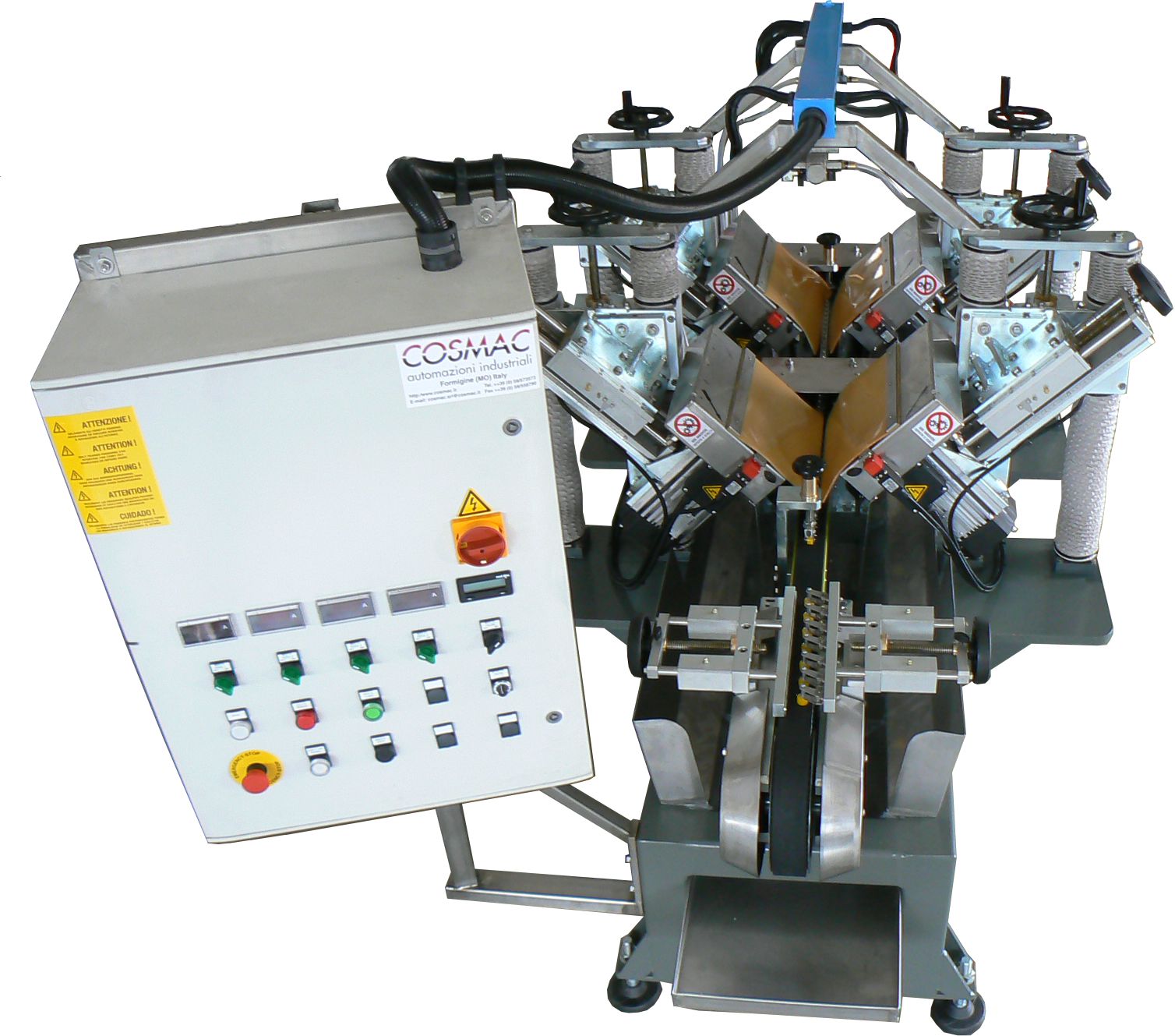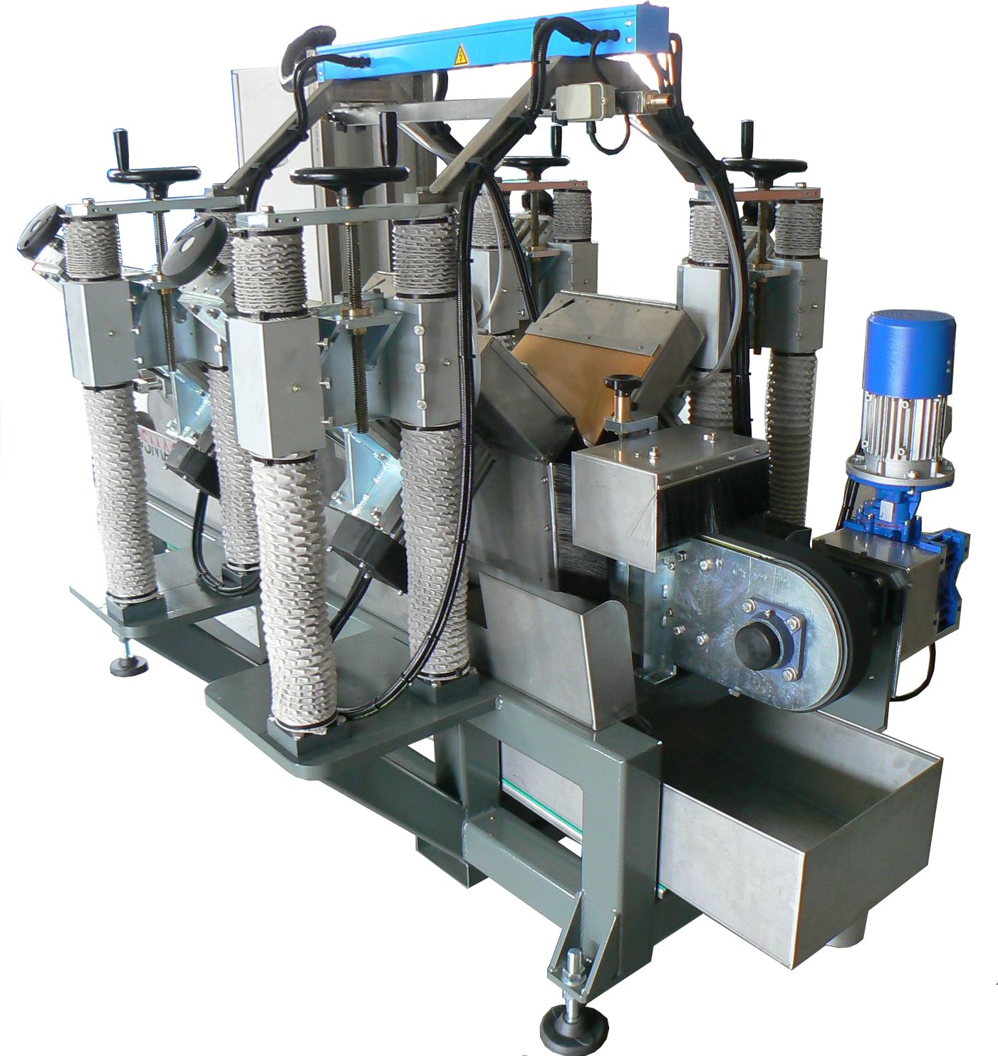 La MTDJ4T si utilizza per tagliare a 45 gradi da entrambe le parti i listelli (alzatine). Questa tipologia di macchina concettualmente è uguale alle altre macchine per ricavare il taglio a 45 gradi, ha la particolarità di effettuare il taglio su entrambi i lati con unico passaggio, avendo le teste di taglio su entrambe i lati Dx/Sx. Il nastro di trasporto è a velocità variabile e la struttura molto compatta e solida garantisce la massima affidabilità e precisione in fase di produzione; tutte le parti a contatto con l'acqua sono in acciaio inox.