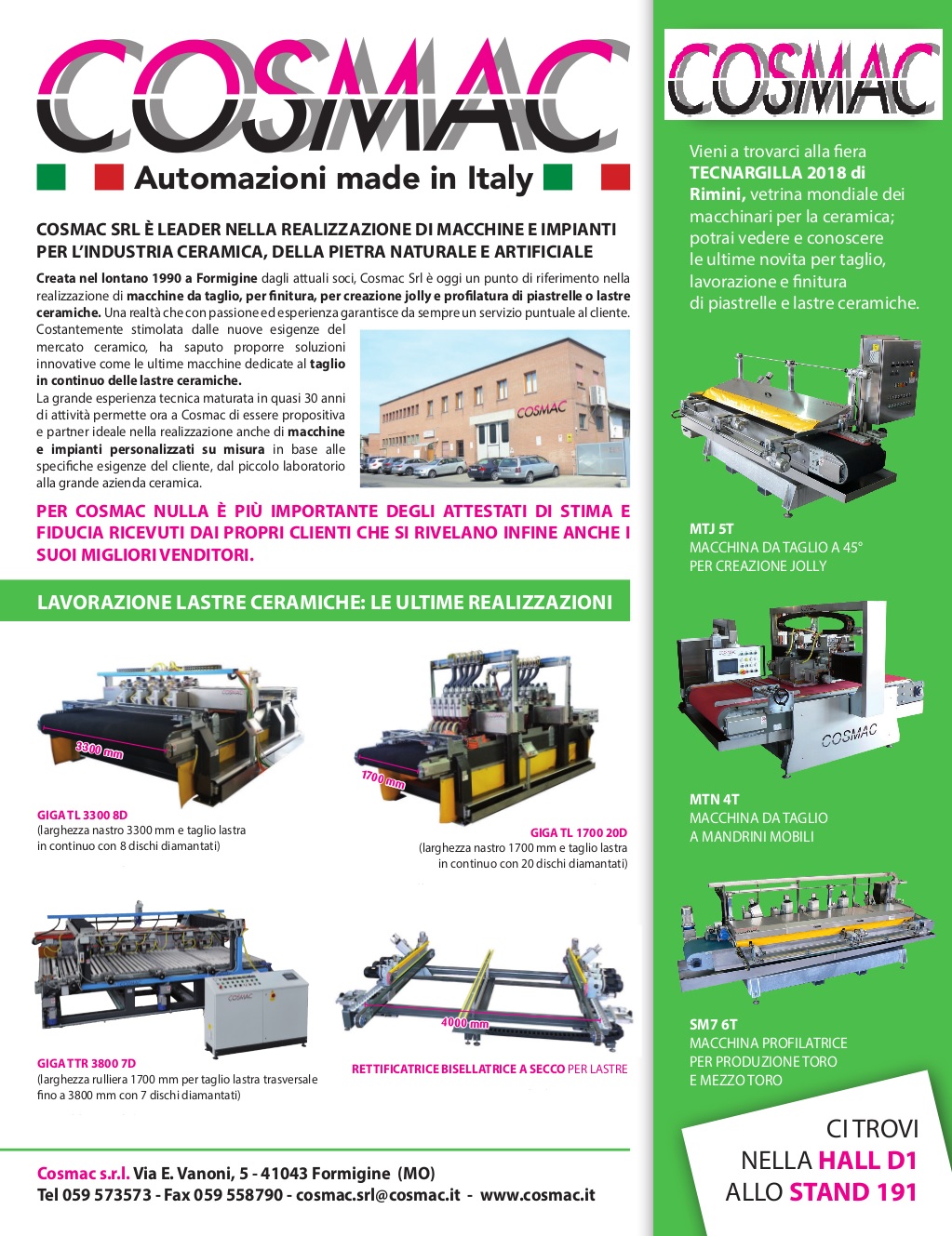 Cosmac è leader nella realizzazione di macchine e impianti per l'industria ceramica della pietra naturale e artificiale